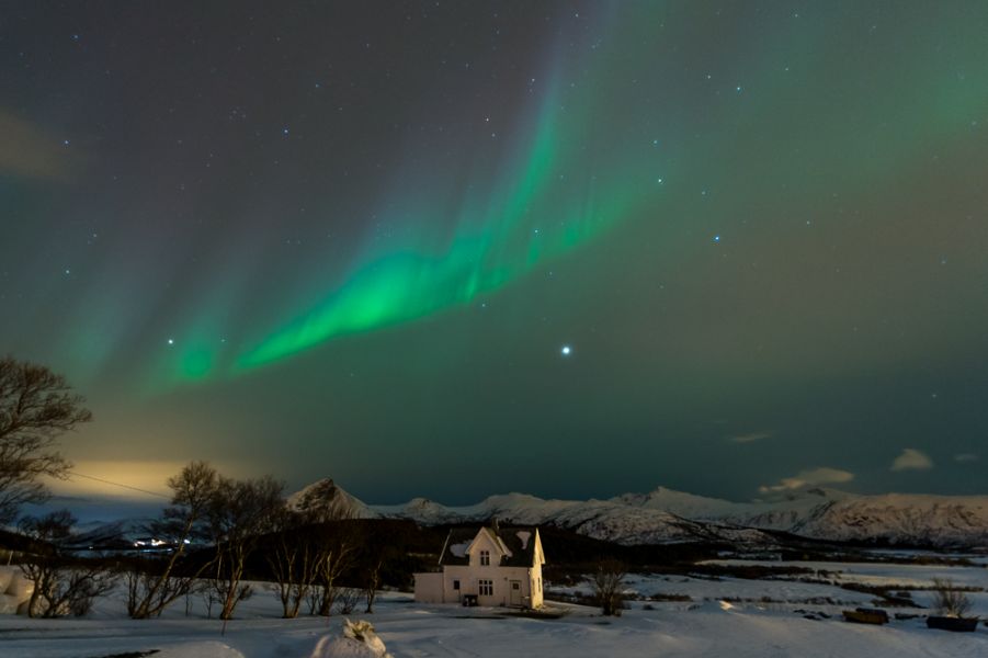 In Gimsoy haben wir tatsächlich ein erstes grün im Himmel, eine kleine Aurora ist für 30min zu sehen.