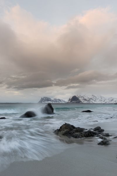 Gegen 17:00 Uhr düsen wir nach Unstad. Der Strand schuldet mir noch immer etwas in punkto Bilder. Naja, einlaufende Flut, ein paar solide Aufnahmen sind drin. Mehr nicht.