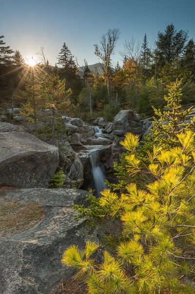 Kurz nach Bethel ist der Crafton Notch Statepark mit einigen Wasserfällen. Wir verbringen den halben Nachmittag an den Step Falls und gegen Sonnenuntergang sind wir bei den Screw Auger Falls, nur eine Meile weiter. Die Step Falls sind in 20 min zu erwandern.