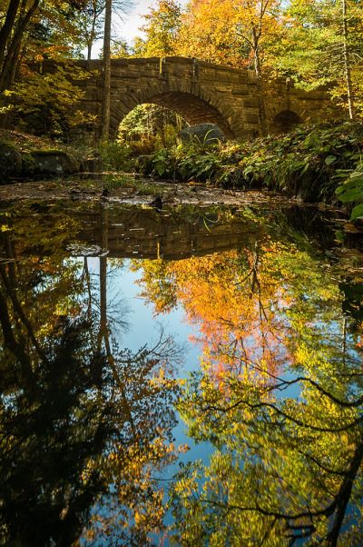 Da der Crafton Notch State Park es uns angetan hat, fahren wir erneut dahin. Unterwegs finden wir zufällig eine Covered Bridge. Ich stehe wieder mal im Wasser für bessere Aufnahmen, jedoch ist es so kalt, dass es bis oben an den Haarspitzen klingelt. Jetzt erst fällt mir ein, dass ich mir extra noch Neoprenwadenstrümpfe speziell für solche Aktionen gekauft hatte. Also raus aus dem Wasser, umgezogen und schon ging es besser.