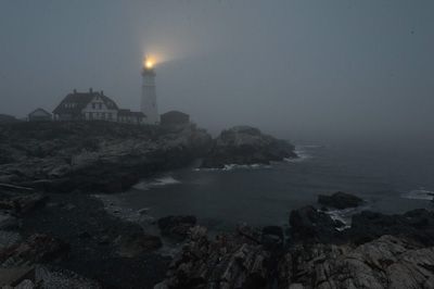 Nach dem Frühstück wird der Leuchtturm am Cape Neddick von uns vorgenommen. Mittlerweile scheint sogar einmal die Sonne hier und die Stimmung steigt. Bis 16:30 Uhr. Ich weiß nicht woher, aber zwischen zwei Bilder (laut Kamera Daten etwa 3-5 Minuten auseinander) ist der Leuchtturm wegen Küstennebel fast nicht mehr zu sehen. Vom blauen Himmel bis zum "ich sehe nichts mehr", ohne Ankündigung. Selbst die amerikanischen Touristen waren völlig baff. Hier in Maine, so wurde mir gesagt, bekommt man auf die Frage nach dem Wetter als Antwort: "Frag' in einer Minute noch einmal." So schnell wechselt das Wetter angeblich.