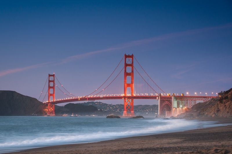 Und wieder Golden Gate Bridge, aber mit ziemlich wolkenverhangenem Sonnenuntergang.