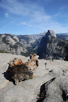 Wir besteigen den Moro Rock, einem solitären Granitfelsen, auf den sehr exponierten Treppenstufen die zu ihm hochführen. Oben ein schöner Ausblick im Morgengrauen. Ich mache noch ein paar Fotos, Tina steigt schon mal abwärts.