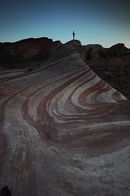 Die lange Strecke nach „Valley of Fire“ führt uns erst in einen Ort Namens Pahrump, wo wir im Mal-Mart die Vorräte auffüllen, wieder einmal tanken und gegen 13:30Uhr endlich frühstücken. In den meisten Motels ist Frühstück nicht im Zimmerpreis inbegriffen. Über Las Vegas, wo wir nur durch den Strip mit den Casinos fahren, geht’s zum heutigen Etappenziel. Ein Campingground ist noch frei, etwas weg vom Auto aber dafür einsam zwischen Felsen gelegen. Schnell noch das Licht ausgenützt und von der „Firewave“ ein Foto geschossen.