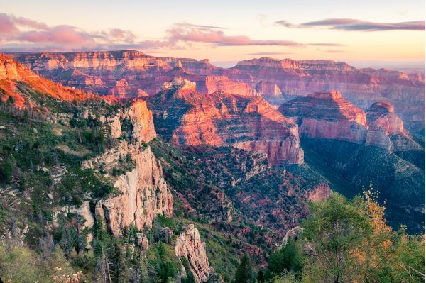 Dann ab nach Northrim am Grand Canyon. Da kommen wir erst nachts um 22:00 Uhr an. Es ist bitterkalt, Schnee liegt auch schon. Wir sind auf 2700 m ü. NN. Da um diese Zeit die Campingplätze und Lodges voll sind, schlafen wir einfach am Straßenrand im Auto. In den Schlafsäcken eingemummelt auf den Vordersitzen geht das schon. Schließlich wollen wir um 5:15 Uhr schon raus um das Morgengrauen am Grand Canyon zu erleben.
