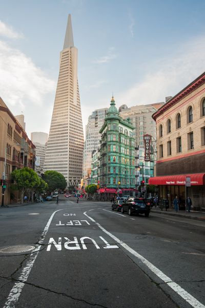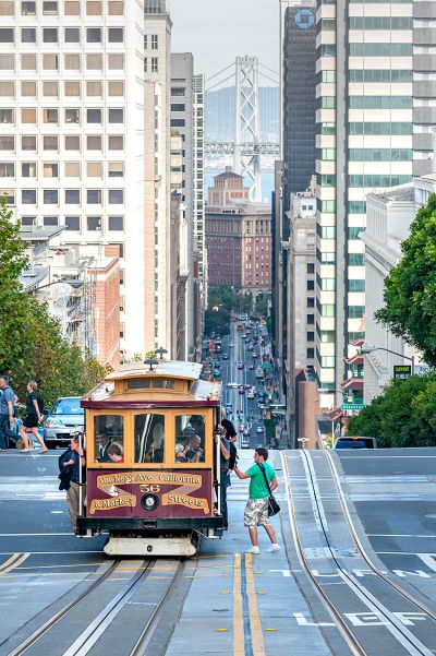 Ohne die kundige Hilfe des Personals mag uns der Check-In Automat nicht mit Boardkarten versorgen. Dann beginnt die Suche nach Gate C16. Wandern wollten wir in den Nationalparks. Zum Glück sind die Trekkingschuhe schon angezogen. Nach ca. 20 min durch die Gänge streifen und den Ausschilderungen folgend sind wir schon da. Die Security interressiert sich für Tinas Schuhe und für meine Kamera. Letztere bekommt wieder einmal einen Wischtest. Doch dann stehen wir vor dem Vogel: Die A380-800 ist schon riesig. Nach einem ruhigen Flug und unauffälliger Immigration nehmen wir unseren Mietwagen in Empfang und fahren in die Stadt zum Hotel, direkt in Chinatown. Um erste Eindrücke zu sammeln geht es zu Fuß zur Lombardstrasse und zu den Cable Cars. Abends (für unsere innere Uhr ist es jetzt 5:21 morgens, nach mittlerweile 28h auf den Beinen) schaffen wir es gerade so zum Baker Beach um die blaue Stunde an der Golden Gate zu erwischen.