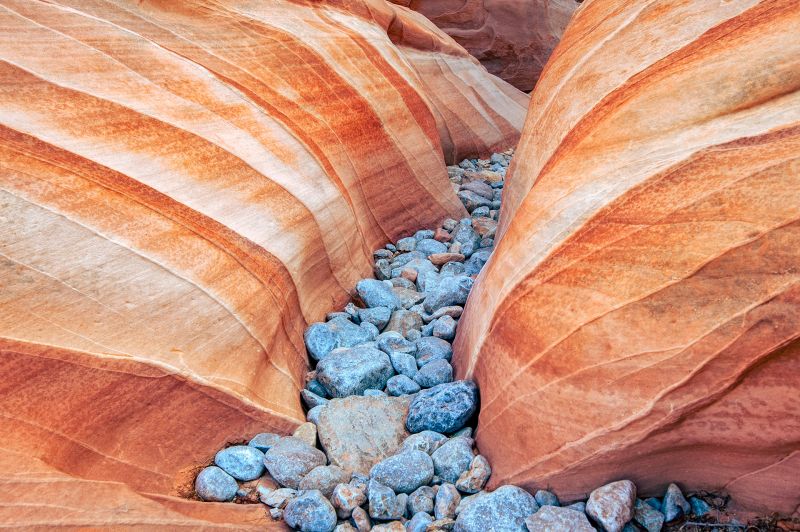 Habe ich schon erwähnt, daß ich mit drei weiblichen Wesen reise? Tina, allseits bekannt, mutierte mit Hilfe meiner Zweitkamera von der Foto Sherpa zur Reisefotografin. Ich muss meine Objektive jetzt selber wechseln. Dann ist da noch „Uschi“, würde deutsch sprechen wenn wir sie lassen würden. Aber das Genöle „bitte wenden“, „noch so und so weit“ etc. nervt. Ansonsten weiß Uschi bzgl. der Strecke alles besser. So sind die Navigations-Uschis halt. Und dann haben wir Bärbel. Hat an allem etwas auszusetzen und nörgelt nur an mir als Fahrer rum. „Tür offen“, „Gang nicht auf Parken“, „Schlüssel steckt noch“, „Licht ist noch an“ etc.pp. Alles wird mit peep-peep-peep-peeep!!! Kommentiert. Bärbel ist unser Jeep. Heute ging es nicht ganz so früh los. Kurz nach der Morgendämmerung durchfahren wir das Valley of Fire um noch ein paar Spots zu finden. Wir machen einen kurzen 3km Trail am White Dome. Zum Glück haben wir genügend zu trinken. Es bekommt im Lauf des Tages wieder 40°C im Schatten. Da ist bergauf und –abwandern auf sandigem Gelände kein einfaches Wandern. Zudem schleppe ich ca. 8kg Fotoausrüstung, jeder ein Stativ und viel Wasser. Erneut geht es zur „Wave“, aber direkt in der Mittagshitze ist das grenzwertig. Dann noch am Augang der „Elephant Rock“ und weiter geht es zum Meilen fressen auf dem Freeway.