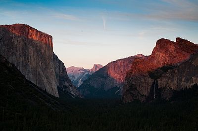 Leider bekommen wir im Tal keinen Camp-Ground, selbst bei der nachmittäglichen Extraverlosung der bis dahin frei gewordenen Plätze gehen wir leer aus. Zum Glück gibt es in der Nähe des Einganges ein Waldcamp, wo noch ein Plätzchen für uns frei ist. Alles aus dem Auto, was irgendwie nach Essen oder Pflegemittel riecht, muss in bärensichere Boxen neben dem Zelt umgepackt werden. Zuwiderhandlungen kosten bis 5000 USD. Jetzt können wir beruhigt noch einmal die 25 Meilen zurück um bei Abendlicht zu fotografieren. Es ist fantastisch, fast minütlich wechselt das Licht.