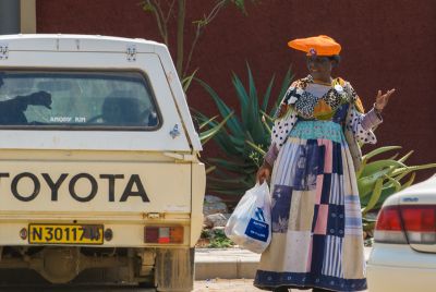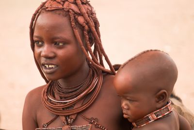 Opuwo: Ein Schmelztiegel von verschieden Stammesvölkerzugehörigkeiten. Hier gibt es die Herero, deren Frauen mit umfangreichen Kleidern, bestehend aus mehreren Metern Stoff und dem Haartuch mit eingewickelten Holzstück bekleidet sind. Dazwischen leben die Himbas im krassen Gegensatz, nur mit Lendenschurz bekleidet, die Frauen am ganzen Körper incl. der Haare eingeschmiert mit einer Masse aus rotem Sandmehl und Butter. Eine unruhige Ortschaft, in der Tradition und Neuzeit aufeinander treffen, mit allen daraus resultierenden Problemen wie Verwahrlosung, Identidätsverlust, Alkoholmissbrauch, aber die letzte Versorgungs- und Tankmöglichkeit für uns. Der gut bestückte, klimatisierte Supermarkt steht im krassen Gegensatz zu den bettelnden Menschen davor.
