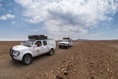 Rene ist bereits nach Windhoek unterwegs, neue Gäste holen. Er kam uns vorgestern beim Kupferbergpass in einer grossen Staubwolke entgegen.