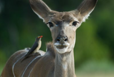 fluchtbereitem Fahrzeug. Unterwegs gibt s wieder viele andere Tierarten zu sehen, unter anderem ein Waterbok-Pärchen, sowie Kudu-Familien und Springboks.