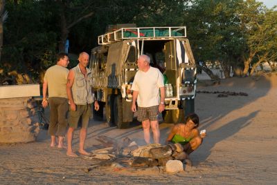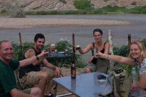 Abends sind wir in Aba Huab Community Camp und treffen auch Rene und Heidi mit ihren Tour-Gästen. Diese sind absolute Camping-Neulinge, haben Hartschalenkoffer fürs Gepäck und sind jetzt schon gezeichnet von der Fahrt im offenen, nur teilweise beplanten 6×6 Pinzgauer, einem alten österreichischen Militärfahrzeug von Rene.