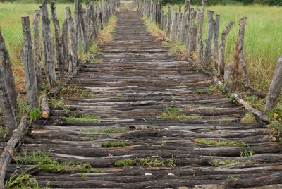 aufschaukelt aufwartet. Etwa 15-25km/h sind der Durchschnitt. Vorbei an First- und Second Bridge. Ich bin heilfroh, dass wir die Brücken seitlich passieren können, die zusammengelegten Holzprügel, die sich Brücke nennen, sind nicht vertrauenserweckend. Gut dass es so trocken ist. Wir erreichen Third Bridge, unser