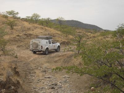 Für die Luftfilter wäre es außerdem auch nicht gut. Alle 1-1,5 h wird angehalten, wir treffen dann zusammen um zu sehen ob noch alles in Ordnung ist und keines der Fahrzeuge liegen geblieben ist. Kommunikation in Form von Mobiltelefon gibt es seit 3km außerhalb von Opuwo nicht mehr, Funkgeräte haben wir nicht. Das nächste Mal plane ich aber diese PMR-Minigeräte ins Reisegepäck mit ein. Die Strecke ist rau, sehr holprig zu befahren. Es geht durchs Gebirge auf steinigen Schotterpfaden, Höchstgeschwindigkeit so etwa 35-40km/h. Die Strecke nach Orupembe ist 180km lang.