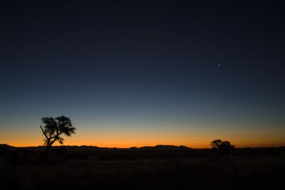 Um 5:00 Uhr klingelt der Wecker, wir wollen vor Sonnenaufgang wieder in der Sossusvlei bzw. heute im Dead Vlei sein. Dank der neuen Teerstrasse schaffen wir es