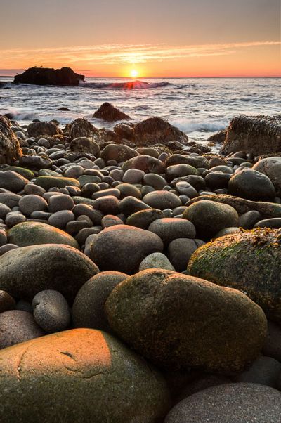 Unser erster Küstenpunkt sollte Hendrick Headlight sein, ein Leuchtturm mit nettem Bootshaus. Da wir uns verzetteln, kommen wir 10min vor Sonnenuntergang an. Doch leider ist der Leuchtturm und das Gelände weiträumig Privatbesitz (stand in meiner Recherche nirgends). Jetzt eilt es um schnell eine Perspektive zu finden, daher noch einmal zurückgefahren um aus der gegenüberliegenden Seite ein Bild zu machen. Geht aber nicht, da das alles Privatstrassen, -wege und private Grundstücke sind. Keine Chance. Zum Glück war es kurz nach Ebbe, die Flut rollte herein und wir konnten trockenen Fußes einen Felsen in der Bucht erklimmen, der bei nur einem halben Meter höheren Wasserstand nicht mehr erreichbar wäre. All das geschah in weniger als 10min, als wir auf dem Felsen aussen ankamen schlug der Himmel für einen Augenblick um. Wenig Minuten nach offiziellen Sonnenuntergang bot sich ganz kurz ein fantastisches Schauspiel.