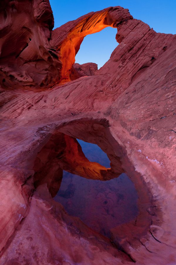 Es geht bergab, wir wollen erneut zu dem schönen wilden Campingplatz im Valley of Fire. Gegen 16:00 Uhr sind wir dort, bauen das Zelt zum Platz reservieren auf und ziehen los. Um 17:30 Uhr ist Schluß mit Fotolicht da die Sonne schnell hinter den Bergen verschwindet. Wir nutzen aber ab 19:00 Uhr da Mondlicht für ganz besonders schöne Aufnahmen der roten Felsen.