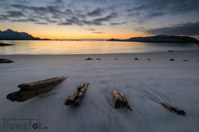 Gegen Mittag wird es etwas besser und bei 500m Sichtweite verlassen wir das Haus Richtung Leknes. Kurz mal Ballstad angesehen, aber da ist nicht nur der Fisch tot. Also rüber nach Haukland an den Strand. Es regnet jetzt. Ich versuche mich mit „Wasserbewegung auf Felsen“, dito das ganze noch einmal in Uttakleiv. Aber weder interessant Wolkenstrukturen noch passables Licht lassen das Ganze etwas werden. Abends lösche ich die Bilder wieder, nur Schrott.