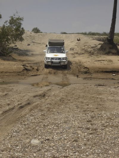Renes Worte klingen noch in den Ohren: “Die ersten 20km sind schwierig bis übel, aber Abschnittsweise in Untersetzung machbar; dann kommen gut befahrbare 70km Tiefsandpiste. Nicht die Kupplung schleifen, sondern stur die Untersetzung arbeiten lassen”.