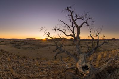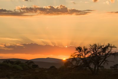 Um 5:00 Uhr klingelt der Wecker, wir wollen vor Sonnenaufgang wieder in der Sossusvlei bzw. heute im Dead Vlei sein. Dank der neuen Teerstrasse schaffen wir es