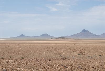 Von Henties Bay führt die Piste eintönig und monoton durch die Skeletton Coast Wüste am Brandberg vorbei nach Nordosten.