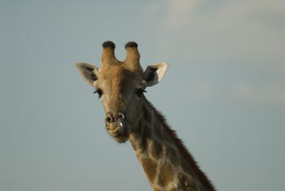 Plötzlich sind wieder diese blauen Perl- bzw. Rebhühner auf der Strasse. Eines läuft zurück, ich kann nicht mehr ausweichen. Im Rückspiegel sehe ich ein paar Federn fliegen. Nach 60km kommt Ghanzi, eine Ortschaft mit Tankmöglichkeit. Beim Einfahren in die Tankstelle laufen lärmende Kinder zu unserem Auto. Ich wundere mich nicht lang, denn sie ziehen das tote Perlhuhn vom Tierfänger vorne. Schnell ist es in einer Plastiktüte verstaut, wahrscheinlich gibt es das Federvieh als Bereicherung des Abendessens bei einer einheimischen Familie.