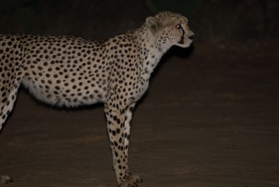 Auch sonst ist nachts ziemlich was los. Wir gehen keinesfalls auf Toilette, es schleichen zu viele wilde Tiere herum. Am nächsten Tag sehen wir im Sand der Piste auch die Raubtierspuren.